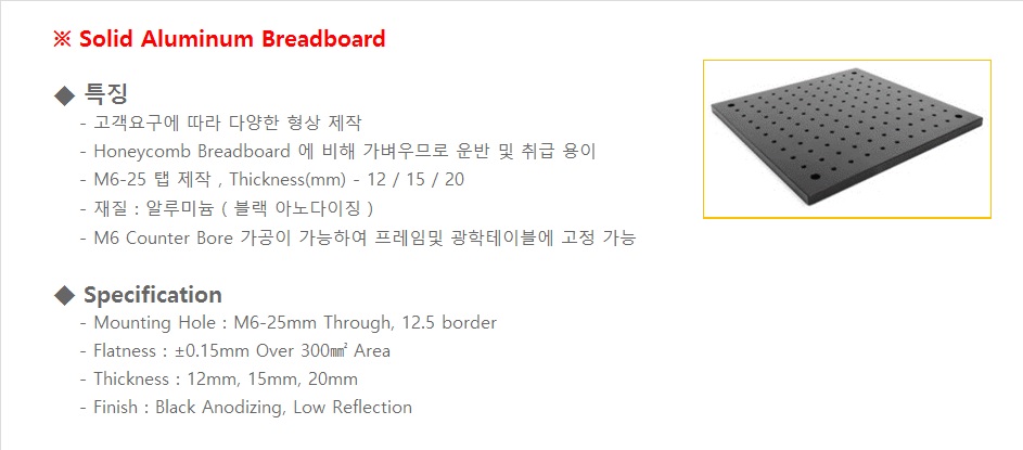 솔리드 알루미늄 브레드 보드 페이지 정보 작성자 관리자 댓글 0건 조회 2,094회 작성일 16-01-04 19:54 본문 ~도면 DATA는 고객지원 > 자료실 에서 다운받아 참조하시기 바랍니다. 목록 글쓰기 이전글MICRO HEAD 50 mm 14.09.11 댓글목록 댓글목록 등록된 댓글이 없습니다.